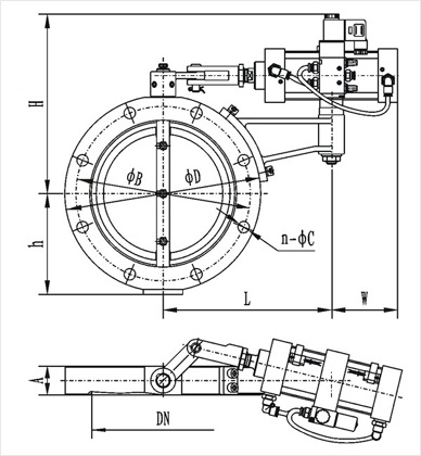 型號(hào) | 通徑(DN) | ΦD | ΦB | H | h | A | L | W | n-ΦC |