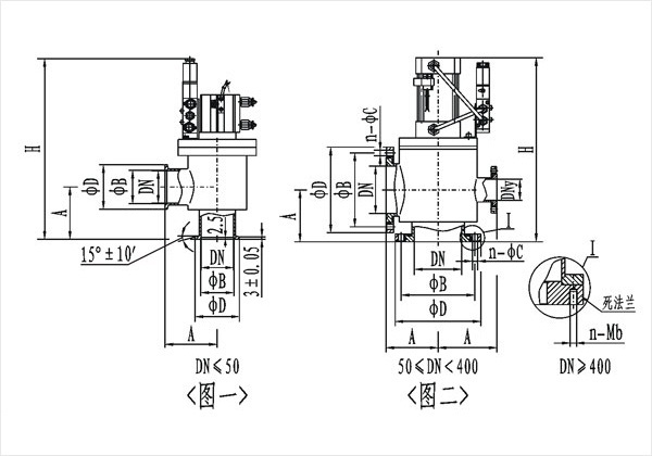 型號(hào) | 通徑(DN) | ΦD | ΦB | H | A | n-ΦC | DNy(預(yù)抽口) | n-Mb | 法蘭標(biāo)準(zhǔn) |